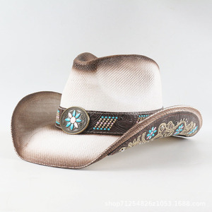 跨境牛仔帽西藏旅游拍照沙滩遮阳帽男女士花朵刺绣草帽礼帽男夏