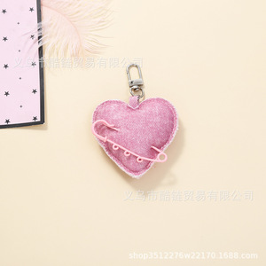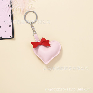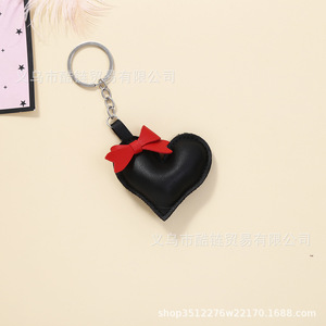 创意爱心手工蝴蝶结装扮皮革桃心钥匙扣环圈背包挂件高级感挂饰