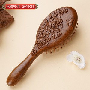 中国风梳子礼盒高档 金丝檀木气囊梳头部按摩经络梳家用美发梳