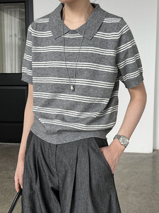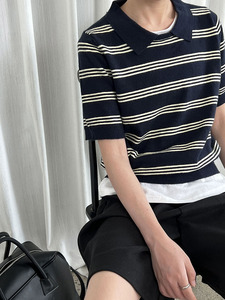 NS 韩系翻领针织条纹上衣女秋季新款显瘦通勤polo衫ss746