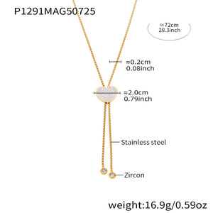 P1291-金色爱心锆石项链72cm