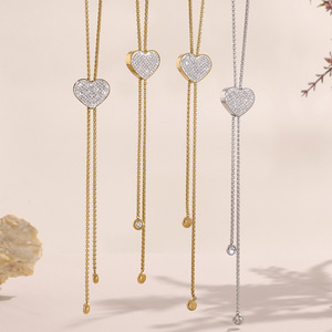 谜丽流苏爱心5A超闪锆石长款项链毛衣链不锈钢18K金百搭女士配饰