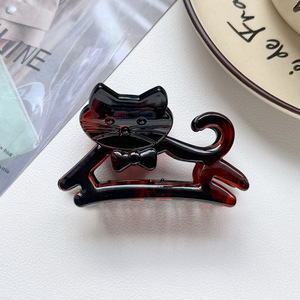 跨境创意PC猫咪抓夹时尚卡通可爱氛围感后脑勺半扎夹子盘发鲨鱼夹