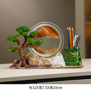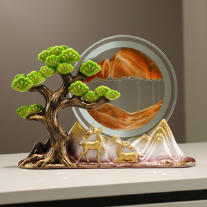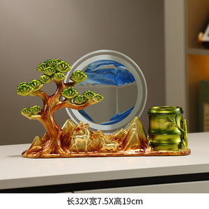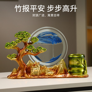 新中式迎客松流沙画玄关摆件家居客厅桌面电视柜装饰乔迁新居礼品
