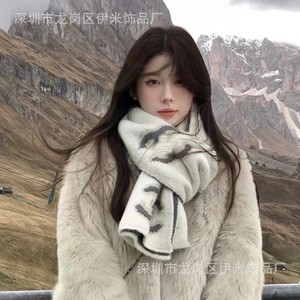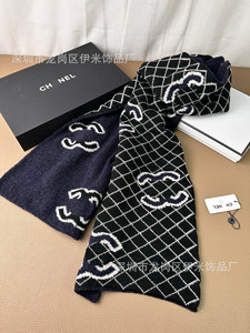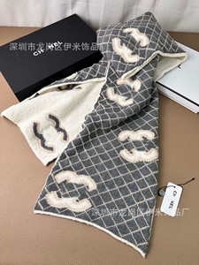 香奶奶菱格双面围巾女高端小香风字母围巾秋冬季百搭保暖围脖外贸