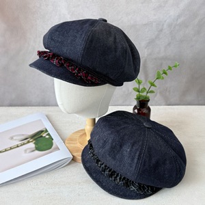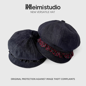 批发25年早秋新款蕾丝牛仔贝雷帽女日系复古个性显脸小画家帽子潮