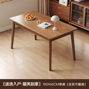 实木餐桌长方形北欧现代吃饭桌子家用小户型简约胡桃餐桌椅组合