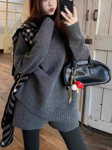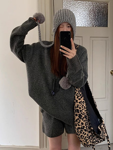 针织套装慵懒风宽松毛衣针织衫女2025春秋新款高腰短裤短裙两件套