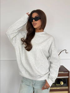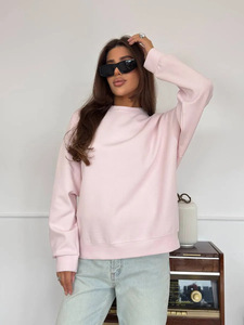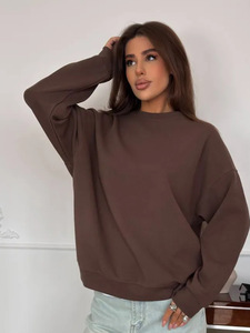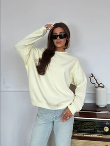 秋冬季欧美风简约气质纯色光版宽松百搭加绒加厚圆领卫衣外穿上衣