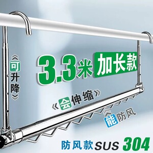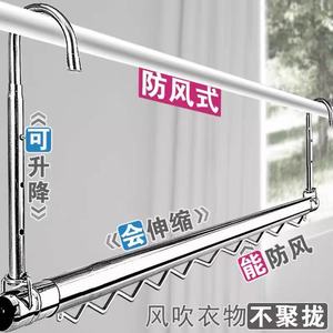 【升级版】不锈钢伸缩晾衣杆家用阳台免打孔悬挂式升降晾衣架晒被