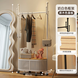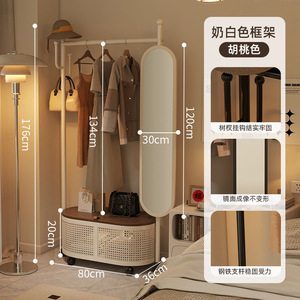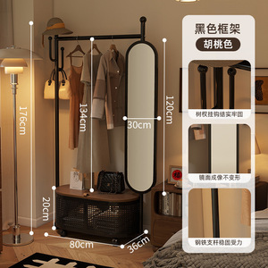 可移动挂衣架带镜子卧室落地式全身镜一体衣帽架试衣镜子置物架子