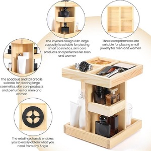 浴室香水托盘梳妆台架柜台架台面架可旋转便携拿取旋转木质收纳盒