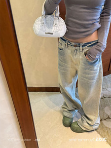 SUNONEONE 做旧水洗渐变牛仔裤女夏2025新款美式复古宽松休闲裤子