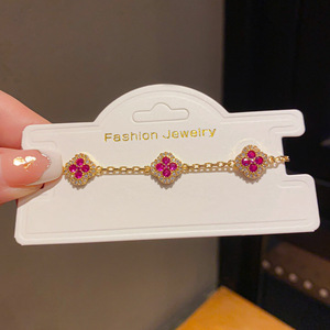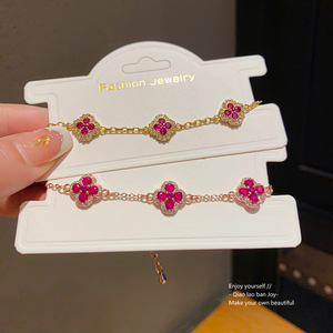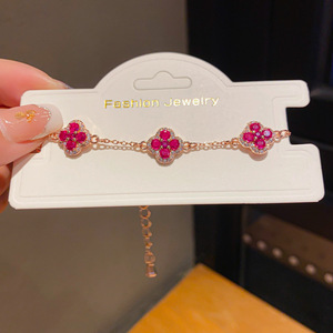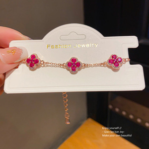 18K真金电镀锆石花朵手链复古甜美气质通勤手环轻奢高级感手饰女