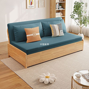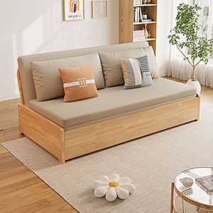 【精致设计】实木折叠沙发床无扶手多功能两用伸缩可折叠双人客厅