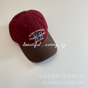 水洗棉秋季新品儿童美式撞色字母男童女童学院风鸭舌帽