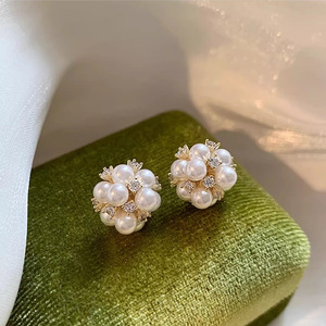 韩系微镶锆石花朵珍珠耳钉女精致小众设计耳环轻奢气质高级感耳饰