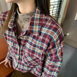 复古时髦感拉满!2025秋款慵懒风百搭休闲宽松磨毛格子衬衫女
