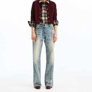 alrigh ミッドハイウエストローウエストレトロヘビーウォッシュピュアコットンストレートデニムパンツ 2025 夏の新スタイル