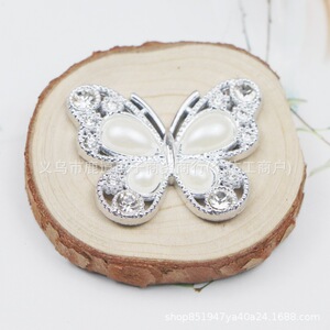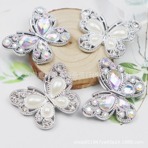 4厘米镶钻镶珍珠蝴蝶树脂配件手工饰品diy配件鞋花鞋扣手机壳贴片
