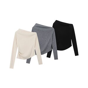 BSK&TRAF女装2025年秋季新款 时尚斜肩不对称针织打底上衣063829