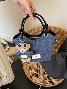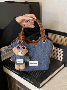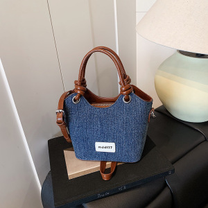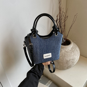 包包女夏季牛仔蓝通勤手提女士斜挎包2025新款小众设计单肩水桶包