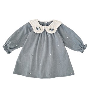 韩版女童连衣裙春秋款灯芯绒洋气长袖绣花领公主裙儿童女宝宝裙子