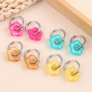 跨境ins风简约耳钉荧光色花朵亚克力耳环时尚小清新耳坠耳饰品女