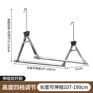 跨域不锈钢伸缩晾衣杆可调节高度晾衣架晒衣被神器折叠悬挂式双杆