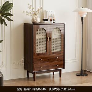 斗柜客厅收纳柜小立柜复古藤编实木腿置物柜卧室靠墙储物柜抽屉柜