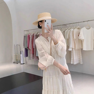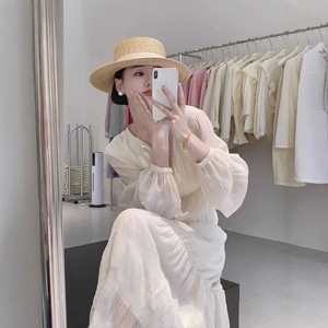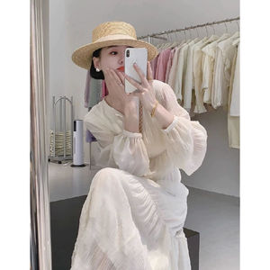 春先の海辺の休暇ビーチロングスカートフレンチホワイトドレスレディース夏2025新作春夏ウェア
