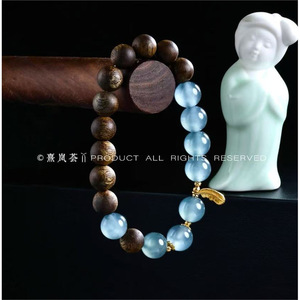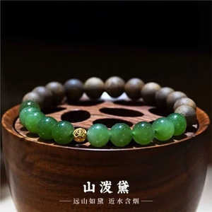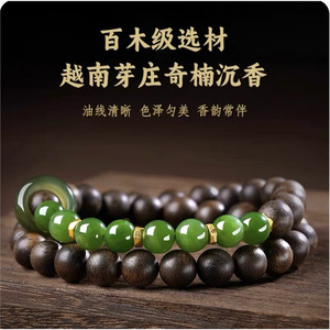 文莱沉香手串女士盘玩天然和田玉串珠双圈手链新中式国风转运珠