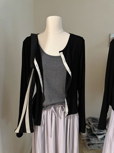 韩版简约长袖开衫外套+内搭吊带背心+百搭高腰休闲裤套装女夏季