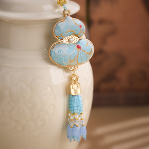 【不愁喝-福勺】宋锦葫芦粉色流苏项链