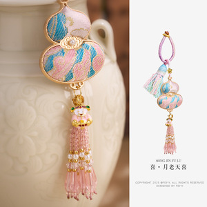 【不愁喝-福勺】宋锦葫芦粉色流苏包挂
