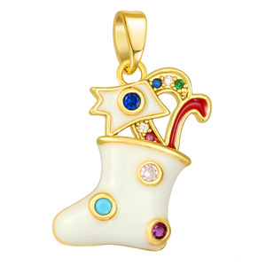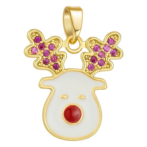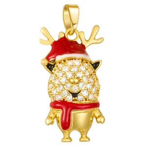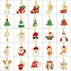 跨境爆款铜微镶圣诞节雪花麋鹿滴油项链手链挂件吊坠 DIY饰品配件