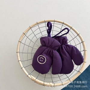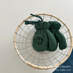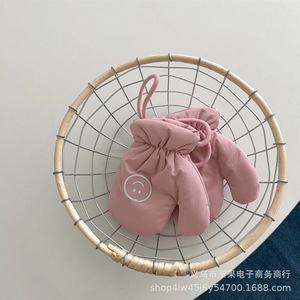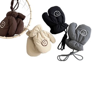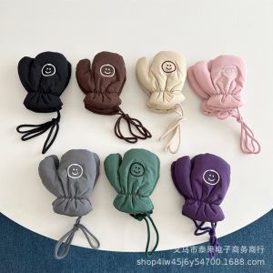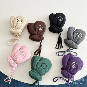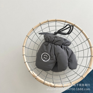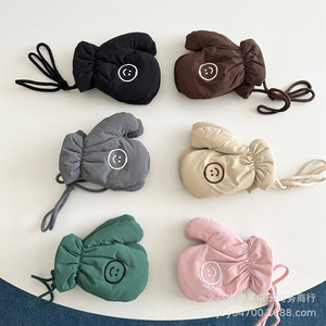 25年新款充棉卡通笑脸包头挂脖手提韩版ins风 男女童冬季防寒手套