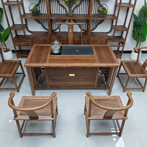 大板实木原木茶桌椅组合一桌五椅新中式茶几办公室家用功夫泡茶台