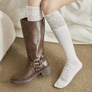 春夏薄款花边长筒袜芭蕾风网纱堆堆袜过膝jk袜子女纯色蕾丝小腿袜
