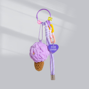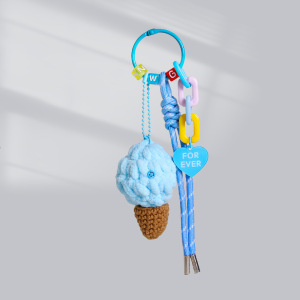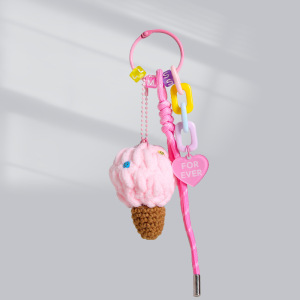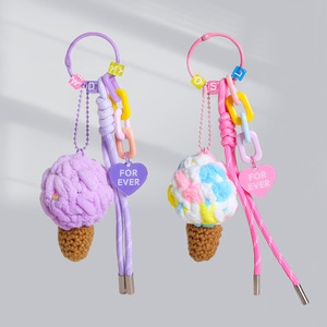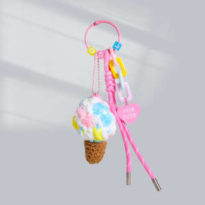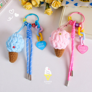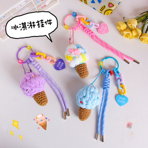 毛绒冰淇淋钥匙扣挂件ins风包包挂饰毛线仿真甜筒情侣书包装饰品