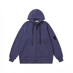 跨境货源25原标春秋纯色臂章圆领拉链连帽卫衣男女款情侣宽松长袖