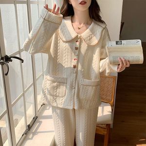 5A抗菌纯棉睡衣女秋冬季空气棉春秋新款长袖加厚女士可爱家居服套