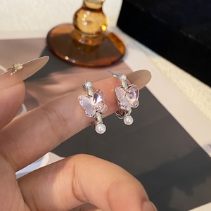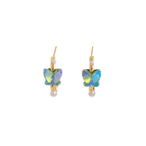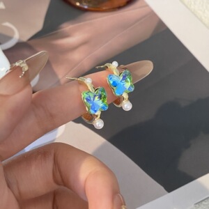 银针绿叶仙踪春夏彩色炫彩镶钻蝴蝶耳钉新爆款珍珠耳圈少女耳饰