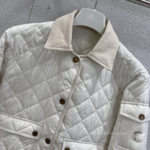 纯色菱格翻领长袖棉服 减龄少女风百搭短款夹棉小外套秋 ZW62720