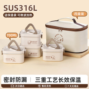 史努比上班族保温饭盒女便当盒316L不锈钢午餐盒多层可微波炉加热