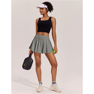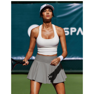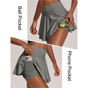 跨境新款女式网球匹克球褶皱运动裙带口袋短裤高腰防走光运动短裙