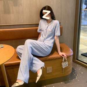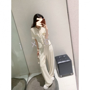 欧货时髦休闲运动套装女夏季高端气质小香风粉色阔腿裤时尚两件套