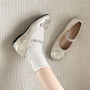 复古芭蕾风水钻一字带玛丽珍鞋女蝴蝶结浅口内增高温柔单鞋配裙子