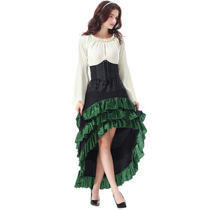 外贸款式万圣节文艺前短后长荷叶边长裙.中世纪服装海盗款塑腰裙