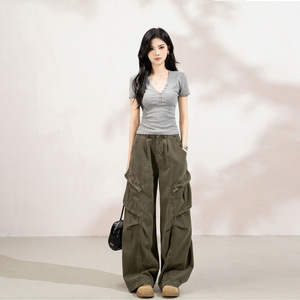 2025 新しいカジュアルオーバーオール女性の秋のプリーツデザインニッチストレートルーズワイドレッグフロアレングスパンツ